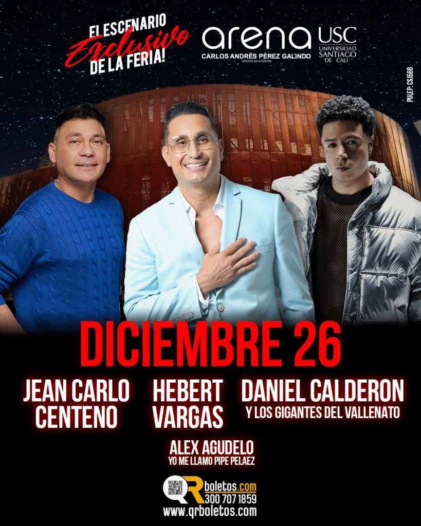 La cita es en la Arena USC, un espacio que se consolida como el gran centro cultural y de entretenimiento de Cali, donde cada presentación se convierte en una experiencia inolvidable.
