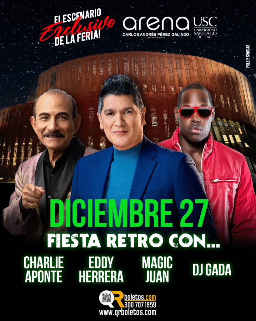 El 27 de diciembre, la Arena USC se transformará en una gran pista de baile con la esperada Fiesta Retro, una noche pensada para quienes crecieron con los clásicos que marcaron décadas. En tarima estarán Charlie Aponte, Eddy Herrera, Magic Juan y DJ Gada, quienes llevarán al público por un recorrido musical lleno de nostalgia, ritmo y energía, convirtiendo la noche en un homenaje a los grandes éxitos del pasado.